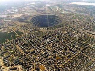 Lubang ini akibat pertambangan berlian. Diameternya 525 meter dan kedalaman 1200 meter. Disebut juga sebagai tambang berlian terbesar di dunia. Pesawat dan helikopter dilarang terbang di atas lubang ini, karena bisa tersedot masuk ke dalamnya.